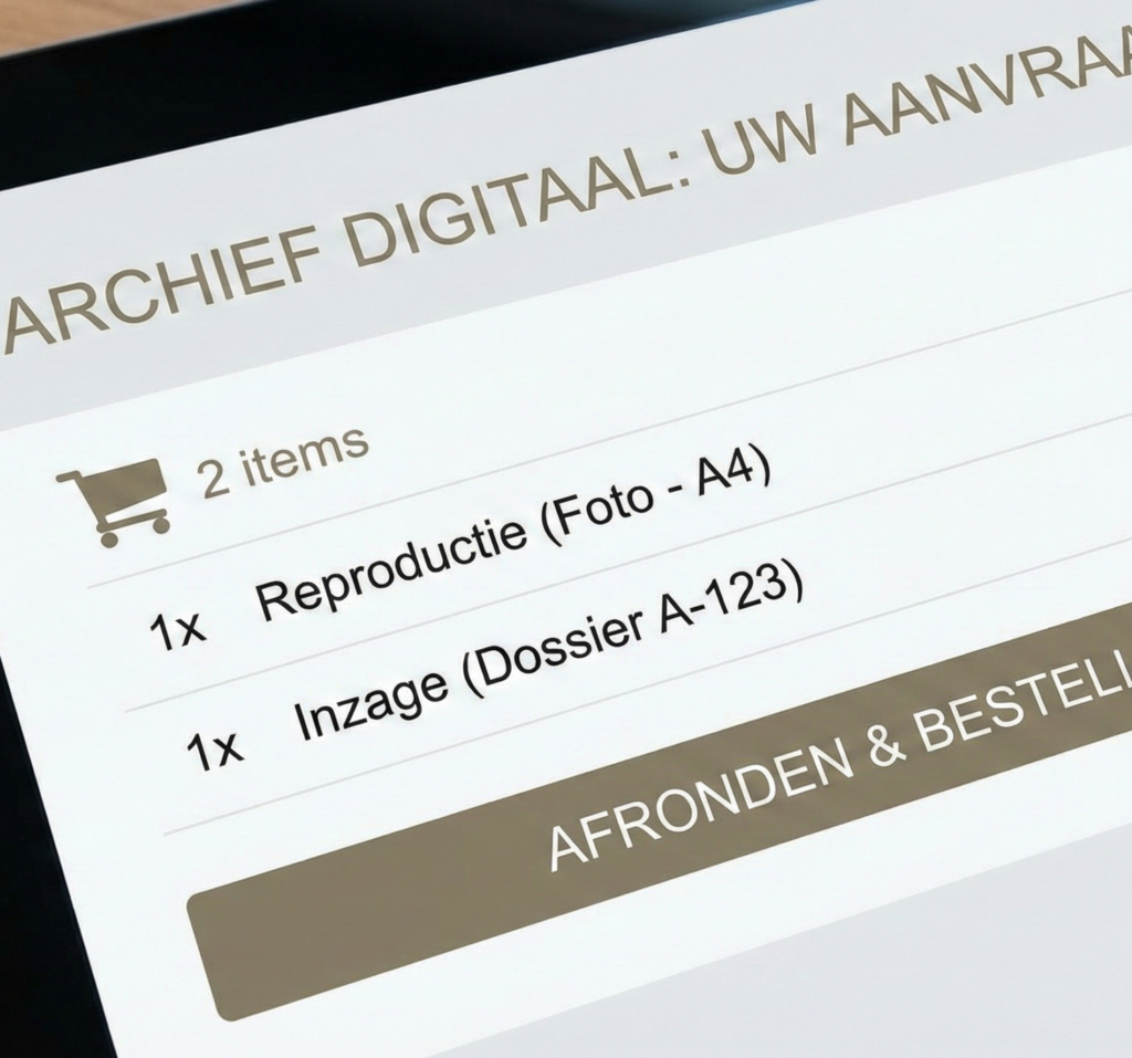 Bezoekers kunnen via een geïntegreerde winkelwagenfunctie eenvoudig inzage aanvragen, het doen van uitleningen en het bestellen van reproducties.